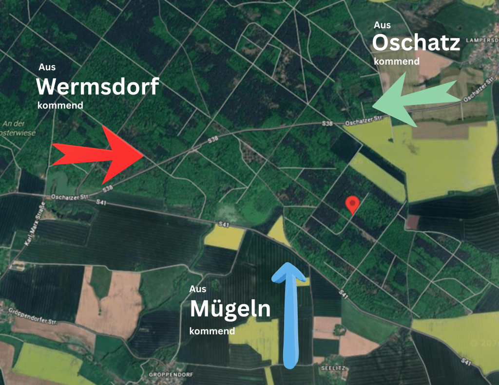Und für alle die noch nie das Vergnügen hatten mit ihrem Hund im Schwarzwildgatter Wermsdorf zu arbeiten, hier eine kleine Anfahrtskizze: