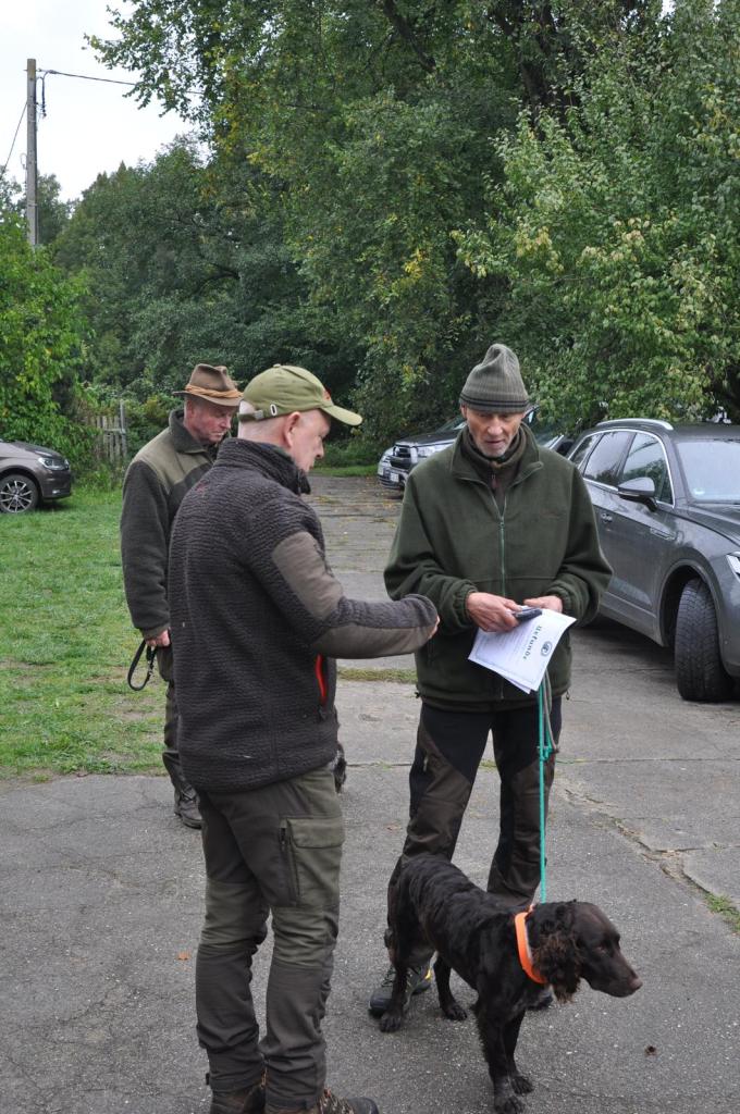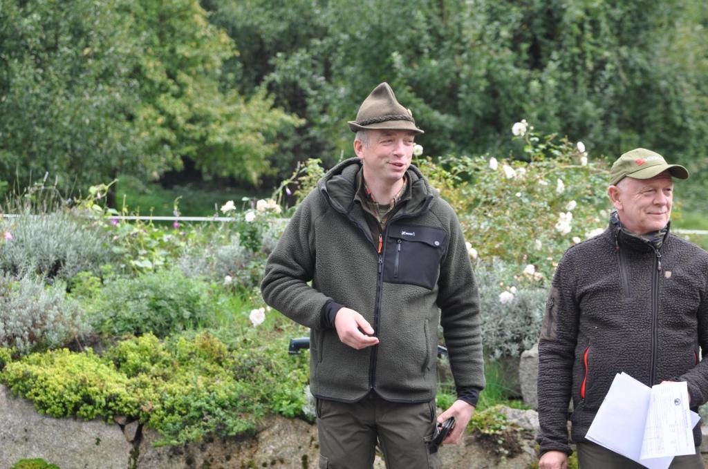 Im weiteren Verlauf wurden erste Gehorsamsübungen eingebaut sowie Widerristhöhe und Gebisse der jungen Hunde begutachtet – wichtige Grundlagen für die späteren Prüfungen. Während einer weiteren Spielsequenz erfolgte zudem die Überprüfung der Schussfestigkeit. Alle Welpen zeigten dabei eine erfreulich sichere und positive Reaktion. Mit der Reizangel wurde eine Stück Rotwilddecke über die Wiesen gezogen, sodass die Hunde auch ihre Nase zum Einsatz brachten.