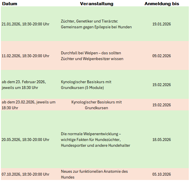 regelmäßige Fortbildungen sind auch im Bereich der Zucht nicht nur für Neulinge, sonderrn auch alteingesessene Züchter wichtig, um auf dem aktuellen Stand zu bleiben. Auch durch den Hauptverein wird eine regelmäßige Fortbildung der Züchter gewünscht.